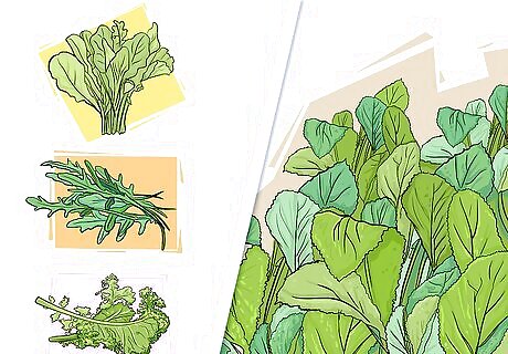 Go for leafy greens like arugula, spinach, kale, and lettuce. These leafy greens do well in light to partial shade. They may not grow to full height or have large, fat leaves, but they will still taste good. Often, leafy greens grown in the shade have a less bitter taste. Other leafy greens like chard and mustard greens also do well in light to partial shade.
