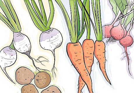 Choose root vegetables like beets, radishes, and potatoes. Root vegetables often flourish in partial shade, as they do not require a lot of direct sunlight to grow well. In addition to beets, radishes, and potatoes, root vegetables like turnips, carrots, and parsnips also do well in light to partial shade.