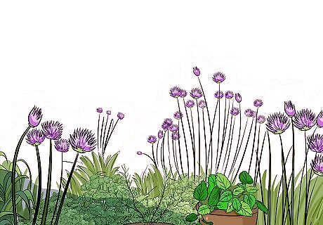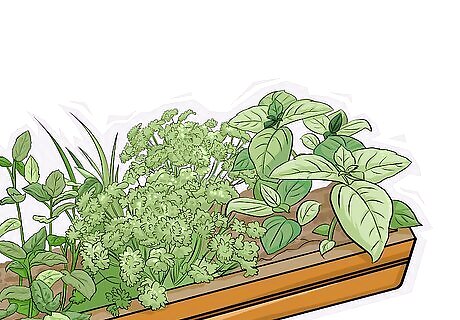 Pick leafy herbs like basil, mint, and parsley. Certain herbs can flourish in light to partial shade, particularly leafy herbs like basil, mint, and parsley. Herbs that grow in the shade tend to have a less bitter taste and a longer growing period, meaning you will have access to these herbs for longer throughout the year.