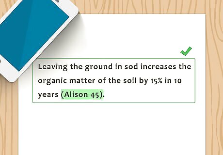 Use the author-page method for parenthetical citations. Generally, when you paraphrase or quote a reference in your research paper, you should follow it with the author of the work and the page number (or page numbers) where the material appears. For example: "(Eggers 23)." The citation goes inside the punctuation. Do not include any punctuation or abbreviations (such as "p.") before the page number.