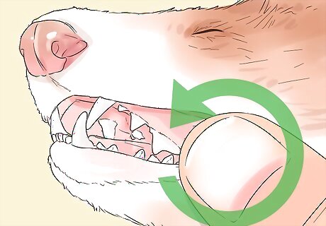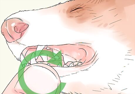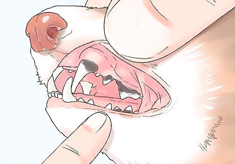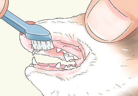 Check for dental problems when you brush. As you brush, look for dark-colored areas of tartar buildup and red, swollen gums. Check for deep, yellowish stains, which are a sign of physical damage. In addition, check for other signs of obvious damage, such as chipped or broken teeth. A vet will need to handle tartar buildup and other dental issues. Brushing can remove plaque, but tartar can only be removed by professional scaling.