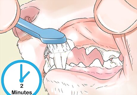 Increase brushing time gradually to two minutes. If possible, brush your ferret's teeth once a day. Add a little more time each day so you can clean your ferret's teeth more thoroughly. Over the course of the first few days, try to get to the point where you can brush for two minutes.