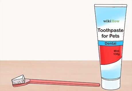Introduce the toothbrush without toothpaste. After a few days of rubbing its teeth and gums with your finger, try placing the toothbrush in its mouth. Don't add toothpaste yet - just wet the brush. Again, limit sessions to 30 seconds a few times a day.