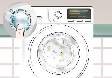 Read the care label on machine washable travel pads. Check your changing pad to see if there’s a care label sewn into the side. Before you proceed, see if the tag recommends hand washing or machine washing. If the care label permits machine washing, read the care instructions to see if a normal, permanent press, or delicate cycle is recommended. Care instructions will differ depending on the travel changing pad that you use. Many travel changing pads come in waterproof, washable materials. However, if the travel pad has extra cushioning built in, it might not be best to place in the washing machine.