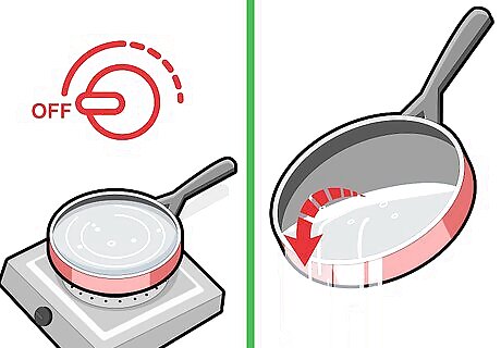 Let the pan cool. Trying to clean a hot pan can lead to burned fingers.