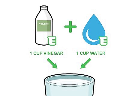 Mix one part acid to one part water. For instance, you can use a cup of vinegar to a cup of water. You can also use cream of tartar or lemon juice. Alternatively, you can use a metal-polishing paste to scrub the furniture in place of the mild acid solution. For brushed aluminum surfaces, you can use stainless steel cleaners. Apply a minimal amount of cleaner, and don't keep it on the surface too long, otherwise it may leave marks that you will need to clean off.