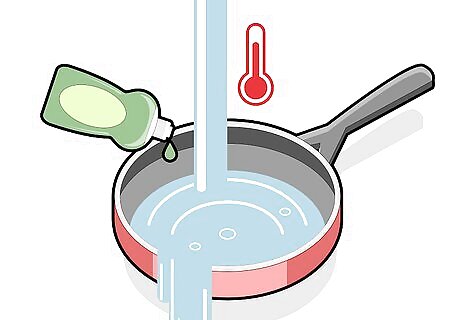 Remove dirt or grease. Wash and dry utensils and pans to make sure they are free of any oil or dirt. Use warm water with dish-washing soap to remove the grease.