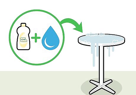Use a mild soap and water to wash the furniture off. Remove any mud, dirt, or grease. Use a product like Soft Scrub to remove any scuffing.