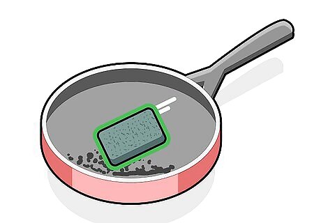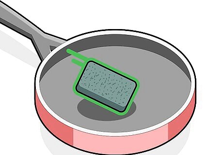 Scrub the pot or pan gently with a scrubber. This process helps remove any leftover discoloration. Avoid using steel wool. It can be too abrasive, causing you problems in the future.
