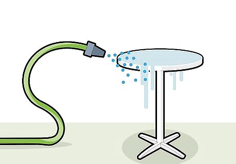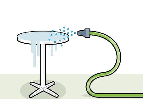 Spray off the furniture with a hose. Make sure any cleaners are off the surface.