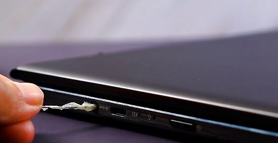 Wrap tape around a paperclip and use it to pull out debris stuck in the jack. Take a standard paperclip and unbend it until it’s a straight wire. Then, take a small strip of clear tape and wrap it around the end of the paperclip so the sticky side is facing out. Gently insert the end of the paperclip with the sticky clear tape until it touches the back end of the jack. Roll the tape around inside of the jack to collect any stubborn bits of dust and debris from the surface. Then, remove the paperclip from the jack and dispose of the dirty tape. Don’t use duct tape or electrical tape, which may leave a sticky residue inside of the jack.