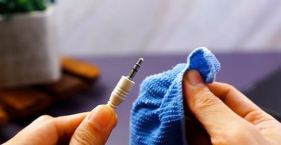 Make sure the plug is dry before you put it into an audio jack. Isopropyl alcohol evaporates quickly, but if the surface of the plug is still damp, take a dry cloth or use a dry section of the cloth you already used and run it over the plug to pick up any moisture from the surface. Check the plug with your finger to make sure it’s dry before you plug it in.