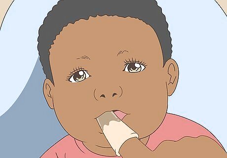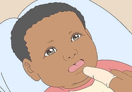 Put your finger near baby’s mouth. When you put your finger near your baby's mouth, your baby will slowly open his mouth as he thinks that you are trying to feed him. Be patient. This is new to your baby, so don’t give up if your child doesn’t open his mouth right away.