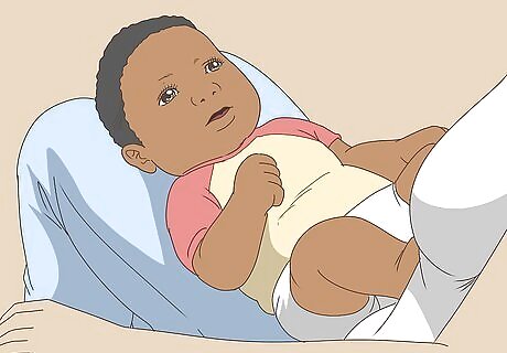 Lay your baby in your lap. Baby should be face up in your lap, with her head close to your chest. From this position you will be able to look directly into your child’s mouth.
