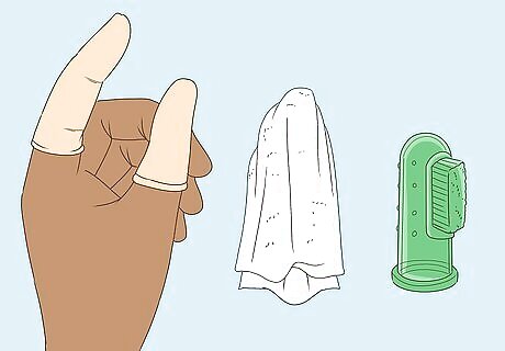 Gather the necessary materials. You will need either a washcloth or terry cloth finger cots, which fit over the finger and are made for this purpose. You can also opt for an oral massager and toothbrush, which is made of rubber and fits on your finger like a thimble. Should you choose to use terry cloth finger cots or an oral massager, you will be able to find them in most drugstores. They can also be ordered online.