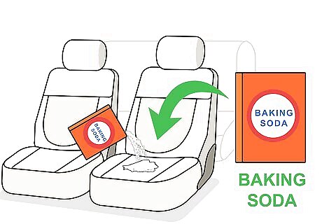 Absorb some of the stain with baking soda. If you have a stained area, you can begin cleaning it up by removing as much as possible with baking soda. Baking soda will absorb a variety of stain-causing compounds, including greases such as motor oil. Sprinkle the baking soda over the surface of the stain. Make sure you have a thick enough coating so that as much of the stain as possible is absorbed.