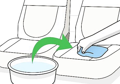 Rinse the area. After you have removed the stain, you should rinse the area with a small amount of clean water. This will remove the cleaner and get rid of any remaining debris in the area. Rinsing can be done by getting a cloth wet, wringing it out, and then dabbing it on the stained area. This will rinse the upholstery fibers without adding too much water to the surface.