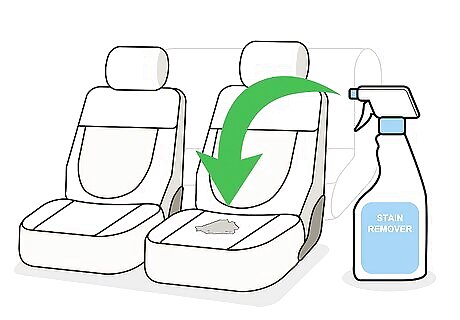 Apply commercial stain remover. There are a variety of products available for cleaning upholstery. Pick one designed for your type of stain and your type of upholstery, and follow the directions on the packaging. With commercial stain removers, it's important to test the cleaner in an inconspicuous spot before using it on the stain. This will assure that the product doesn't stain or discolor your upholstery.