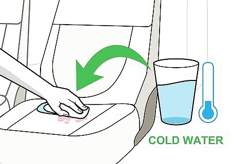 Clean coffee stains and blood stains with cold water. There are certain stains that can be especially hard to get out of fabric fibers once they are set. For instance, blood stains and coffee stains can be especially troublesome. To get them out, blot the area with very cold water, as hot water can set the stain. Repeated blotting with very cold water will remove most minor blood or coffee stains. If your stain is not removed, try adding a few drops of detergent or a splash of club soda directly to the stain. Then continue to blot with very cold water.