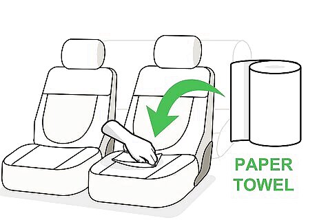 Blot the stain. In general, it's a good idea to avoid rubbing or brushing a stain, as this can drive it further into the upholstery. Instead, blot the area with a rag or paper towel repeatedly. Blot the area until the stain no longer transfers onto your paper towel or cloth. Use a clean, light-colored cloth so you can see how much of the stain is transferring onto it as you work.