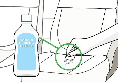 Use isopropyl rubbing alcohol on ink stains. Ink stains can be hard to remove from upholstery, so you need to use the right supplies. Instead of using soap and water, which is commonly used to clean stains, try blotting the area with rubbing alcohol. This will lift the stain much better. Use a cloth or a cotton ball to apply the alcohol to the stain. Hairspray can be sprayed directly onto the stain in a pinch, because it tends to have a high concentration of alcohol in it.