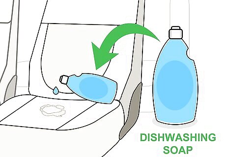 Apply dishwashing soap to grease stains. Dishwashing soap is made to cut through the grease that coats your pots, pans, and dishes. This makes it very helpful when trying to clean a grease stain from other items, such as car upholstery. Dab a little bit of the soap directly onto the upholstery stain and dab the area with a wet cloth.