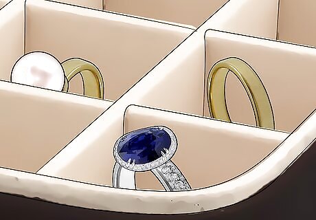 Store your jewelry properly. Never leave your jewelry lying on the counter or on a hard surface. Keep your jewelry in clear plastic bags, one per each item, or in a soft lined jewelry box. Hang up necklaces and bracelets so they do not get tangled or knotted. Keep pearls and other precious gems in soft bags or in their original boxes so they are protected. You can also create jewelry tree for necklaces and earrings so you can look them over easily while you get dressed. This is ideal for fragile jewelry as this ensures it will not get tangled or damaged.