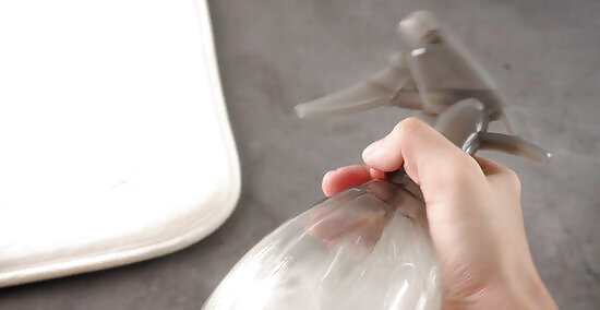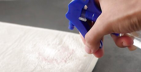 Mix the vinegar cleaning solution. Add 2 parts white vinegar to every 1 part water in a clean spray bottle. The amount will vary depending on how big the stain is and how long it has been there, but as a starting point, add about ⁄3 cup (160 mL) of distilled white vinegar and ⁄3 cup (79 mL) of water.