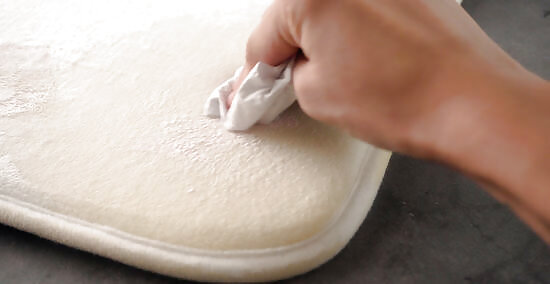 Blot the stained area with a towel. Use a clean dish towel or paper towel to blot or dab the stained area to absorb the vinegar solution, hot water, and loosened slime stain. When using the towel to clean up the stain, make sure that you blot or dab rather than rub or wipe. Rubbing or wiping can make the stain sink deeper into the carpet and may also ruin the fibers in the rug. If the stain is stubborn, you can use a soft scrub brush in addition to a towel to help it loosen, though this may run the risk of spreading the stain even more.