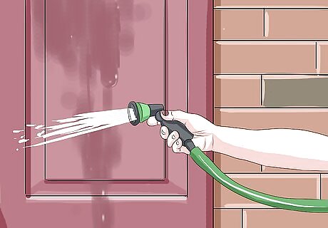 Rinse your shutters. Never let cleaning solution sit on your shutters. Use a hose or damp towel to wipe or spray down your shutters. Keep wiping or spraying your shutters until no traces of cleaning solution remain and water runs clear.