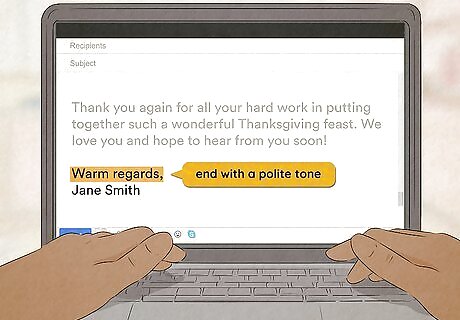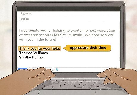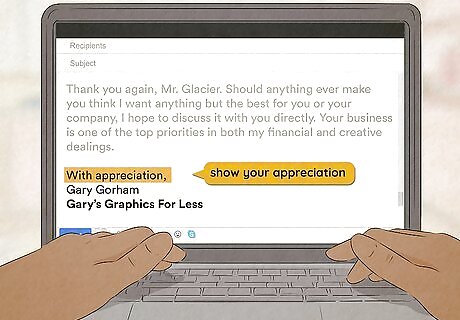 Let the sender know that you appreciate their time. “Thank you” is a good catch-all for any type of request, whether you’re asking a potential client for their business or requesting your deskmate to read over an important assignment you worked on. Here’s a few other thankful sign-offs: “All my thanks” “Thank you for reading” “Thank you for your help”