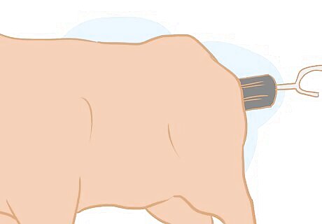 Prepare and insert the anal probe. You should have a helper ready the probe by lubricating it along its length and holding it ready for you to insert it into the anus of the bull. The two lighter-shaded stripes on the probe need to be facing downward, and the point of the probe going in to the bull's anus. As you pull your hand out of the anus of the bull, insert the point of the probe into the anus and keep pushing it in until it reaches the handle.