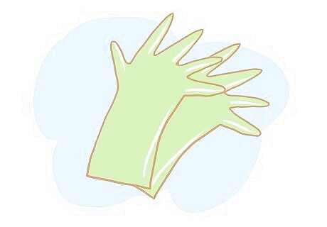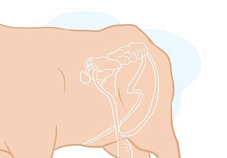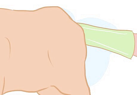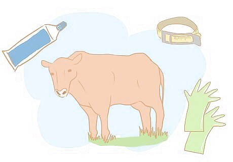 Glove up. Put on an obstetrical shoulder-length glove on your dominant arm or arm you plan to use to insert into the bull's anus, and pour lubricant into the palm of your gloved hand.