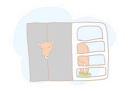 Handle, move and confine the bull to a head-gate or squeeze chute. The chute itself must be able to open up at the bottom to be able to collect semen as the bull ejaculates into the semen collector. The head gate should be wide enough that it confines the bull's head, but doesn't cut off circulation to his body. As you move the bull into the chute, this is a good time to have a look at his conformation (especially the way he walks), and make a visual assessment of his body condition.