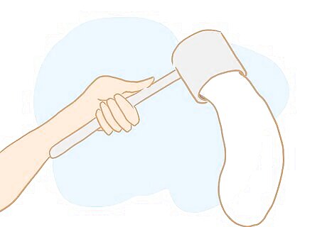 Insert your hand into the bull's anus. Form your hand into a kind of puppet the same way you would when performing rectal palpations on cows (thumb tucked under your fingers, extended so it touches the tips of your fore and middle fingers, and all four fingers also extended out but closed together), and slowly push into the anus, keeping your wrist and arm straight.