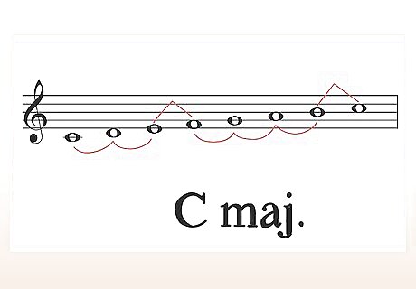 Develop melodies from a chosen scale. Scales are useful tools in the creation of melody. Although melodies need to be properly felt out in order to be memorable and effective, using a scale will narrow down the notes you're conventionally supposed to use. Make sure the scale you're using is in accordance with the chords and key you've chosen. The standard scale is a C Major scale. This scale is often used for vocal warm-ups before a performance.