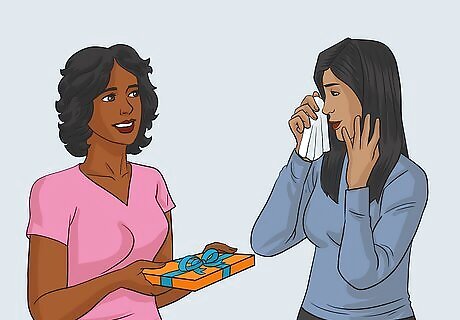 Give a gift. According to the 5 love languages, many people enjoy receiving gifts as ways to show love and support. This can go a long way in cheering someone up who is sad and it shows that you are thoughtful and supportive. Give a gift such as flowers, a card, or her favorite candy. If you are lacking in finances, you can write her a loving letter or make her a home-made gift (art, etc).