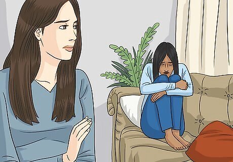 Distract the person. Many times people can get caught up in ruminating, or overthinking, negative thoughts and get stuck in an emotion. Help your friend distract herself in order to reduce rumination. Some helpful distracting or grounding techniques include: watching a happy movie, listening to cheerful music, dancing, naming colors or objects in the room, and playing a game.