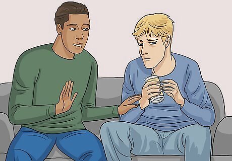 Encourage positive coping. Help your friend find healthy coping resources. Coping skills are ways to deal with negative feelings and situations. This way, she can express herself or heal without causing herself more harm. Some examples of positive ways of coping with sadness include: spiritual or religious activities, creative exercises (art), nature-related activities, exercise, and mindfulness or meditation. Avoid drinking alcohol or using substances to excess with your friend or family member. This can be harmful and does not promote healthy coping or a reduction in sadness. In order to discourage using drugs or alcohol to cope you can educate your friend and offer alternatives by saying, "I've read that coping by using alcohol can create more problems and decrease your ability to deal with your emotions and the situation. What if we watch a funny movie together instead?"
