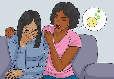 Be positive and hopeful. This means not letting the person’s sadness get you down. You need to be able to regulate your own emotions and not become overwhelmed yourself, otherwise you won’t be able to help your friend very much. Take a break from the conversation if you need a minute to re-group. Perhaps excuse yourself to go to the bathroom. Take deep breaths, or let some of your emotions out if you need to.