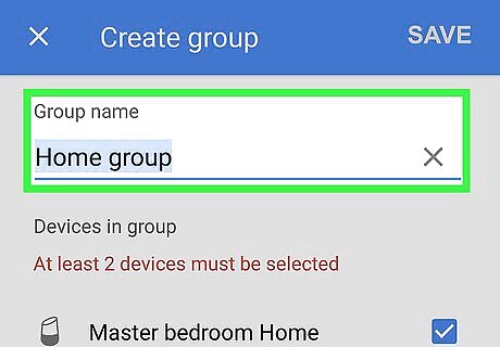Name the group (Amazon and Google Only). Google Home and Amazon Alexa allow you to give the group a unique name. On Google Home, type a name for the group in the line at the top of the screen. On Amazon Alexa, you can select a preset group names, or tap Custom Name to give it your own name.