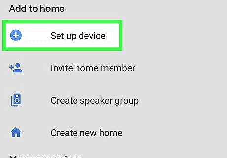 Open the devices menu. The devices menu can be found in the following locations, depending on the app and devices you are using. Google Home: Tap Add on the title screen. Amazon Alexa: Tap the icon with the slider bars in the lower-right corner. Sonos Controller: Tap the Rooms tab. Homepod/AirPlay: Tap the AirPlay icon in the upper-right corner of the Access Control Center.