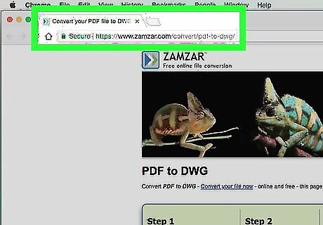 Open the Zamzar PDF to DWG converter. Go to https://www.zamzar.com/convert/pdf-to-dwg/ in your computer's browser. Zamzar allows you to convert as many files as you like, though you must have an active email address to which they can send the download link for the completed file.