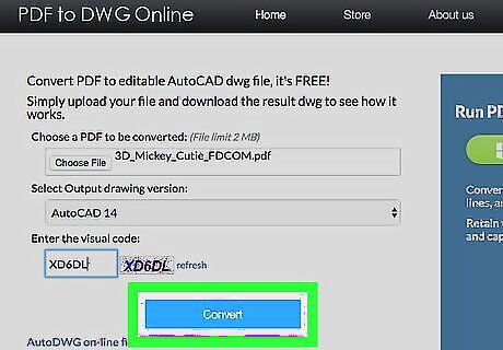 Click Convert. It's a blue button near the middle of the page. Doing so will prompt the uploaded PDF to begin converting into a DWG file. This process can take up to three minutes, so be patient.