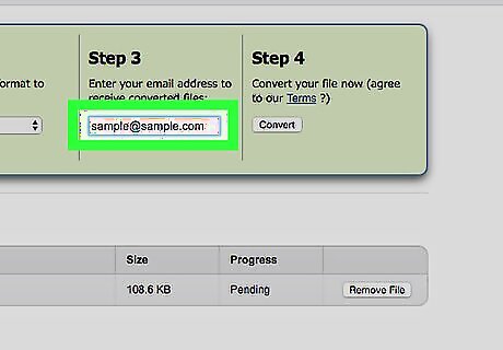 Enter a working email address. Click the blank text box in the "Step 3" section, then type in an email address at which you can receive files.
