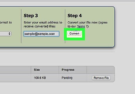 Wait for the email to arrive. Open the email inbox in question and wait for the Zamzar email to appear. Zamzar can take upward of five minutes before sending the email to you, so be patient. If you don't receive an email after a few minutes, click the email not arrived link at the bottom of the "File Upload Complete" section. Be sure to check your email's spam folder if you haven't received the file after a few minutes.