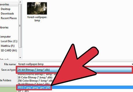 When the dialog box opens, there will be a drop-down menu with a choice of file extensions. Simply choose JPEG, and press enter.