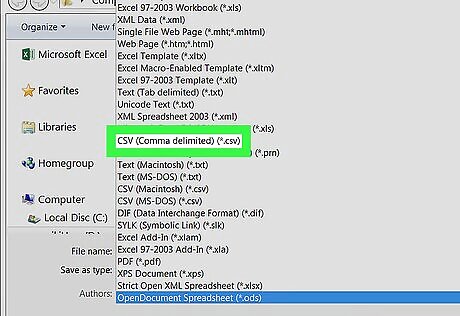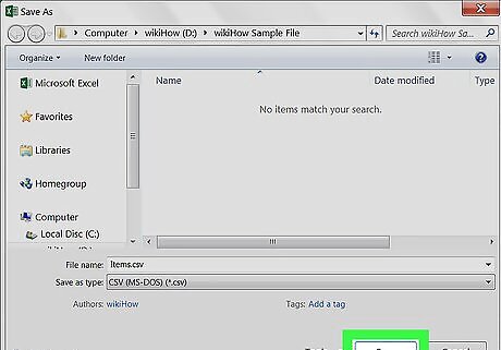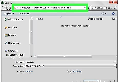 Select a saving location. Browse your folders in the Save As window, and select a location for saving your CSV file.