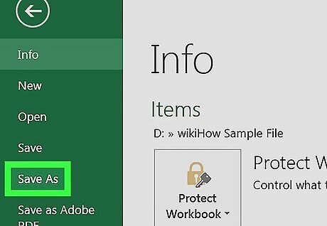 Click Save As on the File menu. This option will allow you to save this spreadsheet in a different file format. Clicking will open a new pop-up window. Alternatively, you can use a keyboard shortcut here. The shortcut for Save As is ⌘ Command+⇧ Shift+S on Mac, and Control+⇧ Shift+S on Windows.
