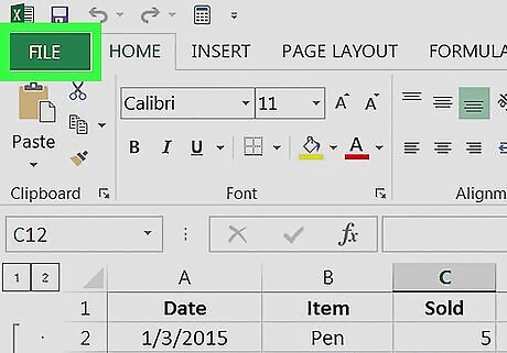 Click the File tab. This button is in the upper-left corner of your screen. It will open a menu of all your file options.